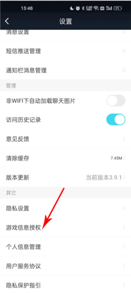 4、进入系统设置页面后,往下面划,在“其他”这个分类里找到“游戏信息授权”;