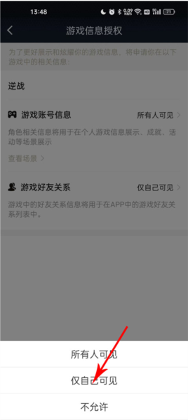 5、把它设置成“仅自己可见”,这样你的个人信息和战绩就被成功隐藏起来啦。