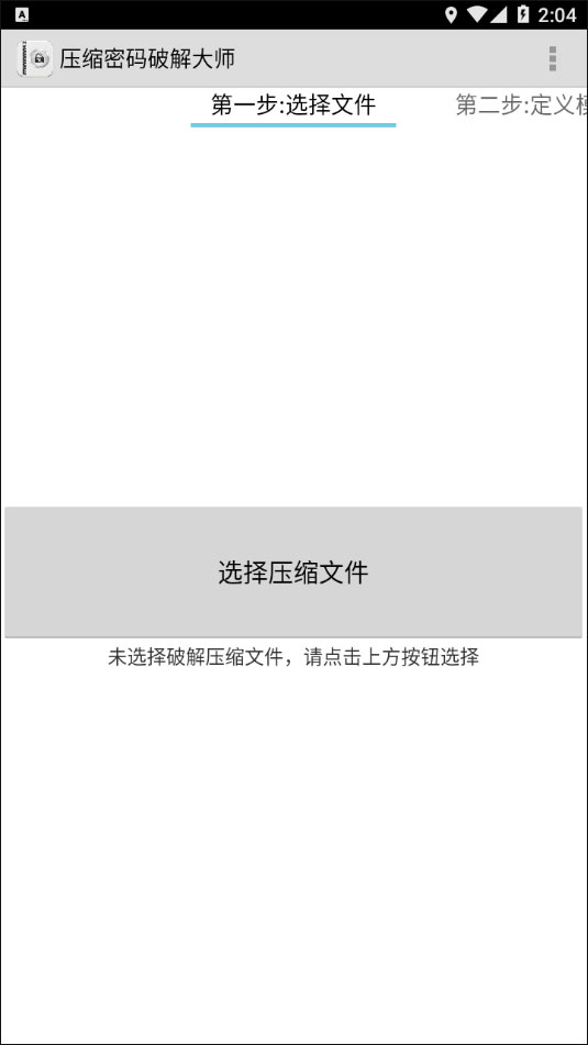 1、首先在手机上启动压缩密码破解大师,然后从文件列表中找到并点选你想要解密的那一个压缩文件。