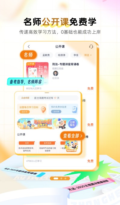 内含八大学科名师免费公开课,基础先修、真题解析等备考课程可无限次畅听,0元体验法考名师课堂。