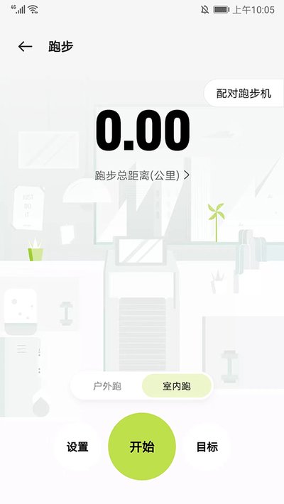 7、进入跑步模式后,你可以先设定好这次运动的目标,比如距离或时间,然后点击屏幕下方的【开始】按钮。
