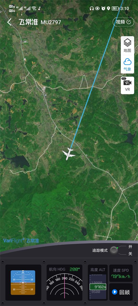4、完成以上操作,你就可以在地图上清晰地看到这架飞机的实时位置和飞行轨迹了。