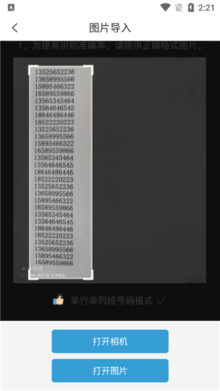 3、如果选择图片导入,只需从相册中选中有电话号码的图片,应用就会自动识别并成功导入。