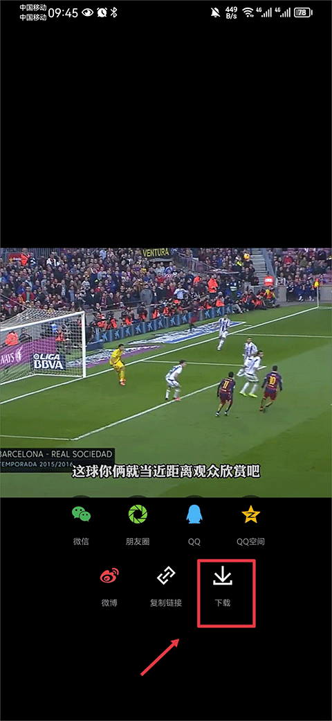 3、点击分享图标后会弹出一些选项,在里面找到“下载”按钮并点击,这样视频就能成功保存到你的设备里了。