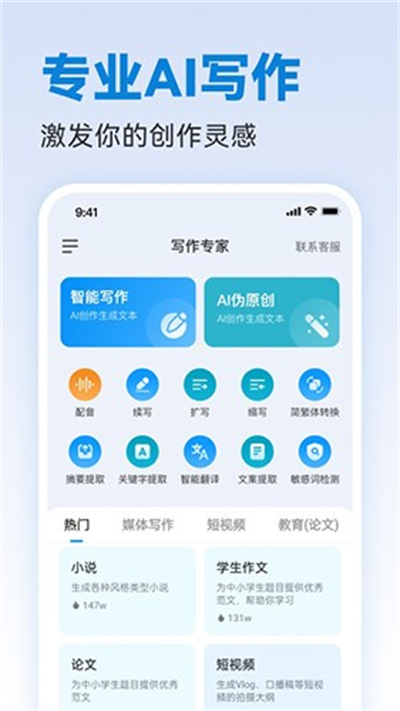 写作专家APP是一款覆盖全场景写作需求的智能辅助软件,适配职场总结报告、学生作文论文、文创文案打磨等各类写作场景,平台打破传统工具单一功能壁垒,搭建完整服务链条,助力无写作基础用户高效产出优质文章。