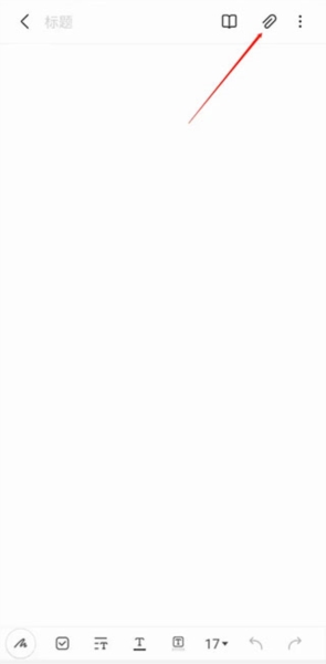 第二步,现在你进入了一个全新的空白笔记页面。把目光移到屏幕的右上角,你会看到一个回形针形状的图标,这通常代表着“添加附件”,点击这个图标。