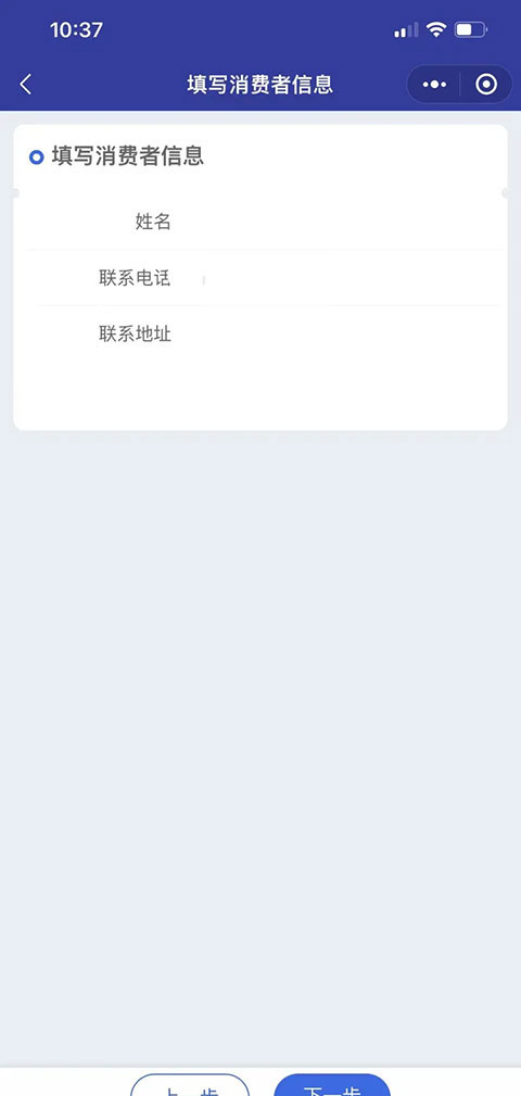 第四步:请根据页面的提示,如实填写你作为消费者的个人基本信息。