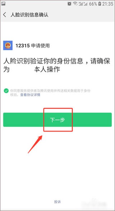 6、系统会弹出一个关于人脸识别信息确认的界面,请仔细阅读后点击“下一步”,准备进行面部识别操作。