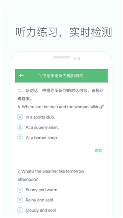 3、所有试题界面针对手机屏幕精心排版,文字大小与布局合理,听题答题过程视觉舒适,操作便捷不费力。