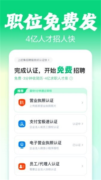 企业免费发布职位,多重认证快速核验,高效筛选优质候选人。