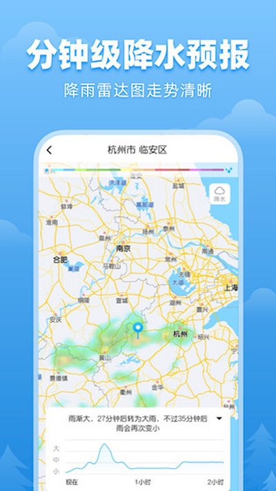 2、分钟级降雨预测:这项功能非常精准,可以告诉你未来一两个小时内,具体哪个时间点会开始下雨,雨势大小如何,以及大约何时会停歇。有了它,你就能从容决定是现在出门还是稍等片刻,再也不用为突如其来的阵雨而狼狈不堪。
