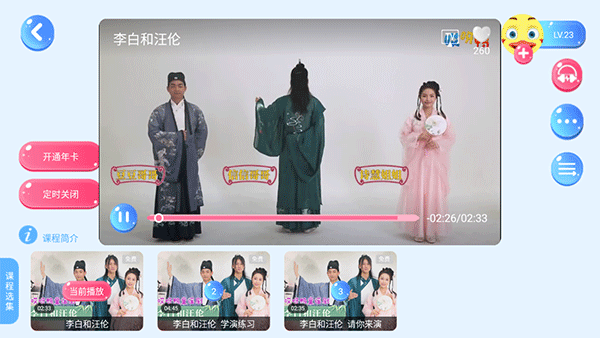 为了适应不同的学习场景,所有的课程内容都支持在视频和音频模式之间一键切换,让孩子能够随时随地进行学习。观看视频时,孩子可以结合文字加深理解;切换到音频模式后,则更便于集中精力进行记忆和背诵。无论是在送孩子上学的路上,还是在晚上临睡前,都可以打开听一听,让孩子在潜移默化中吸收文化知识,为未来的成长储备丰富的文化底蕴。