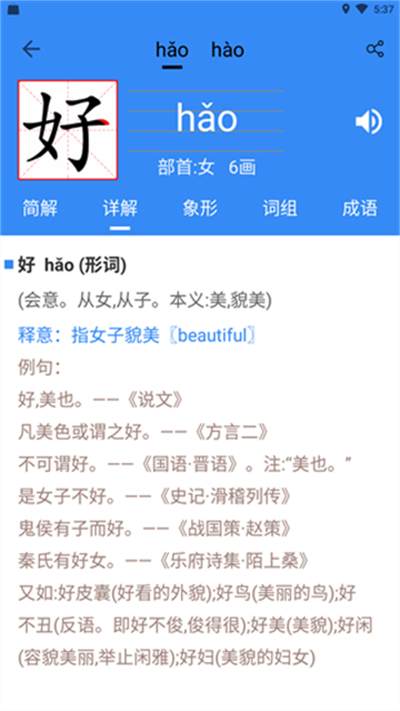 完整呈现拼音、词性、释义、典故等内容,全方位解读汉字用法与渊源。