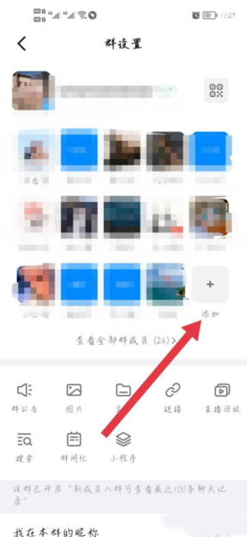 在群设置页面中,你会看到当前群成员列表的右下角有一个“+”号图标,点击它。