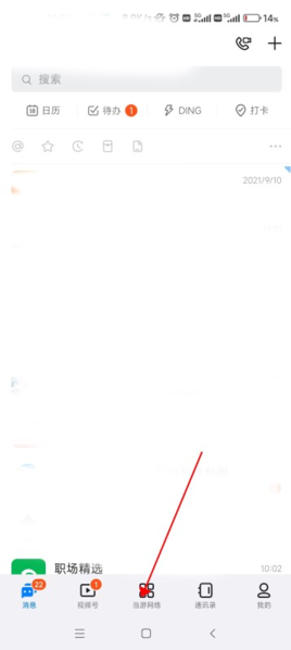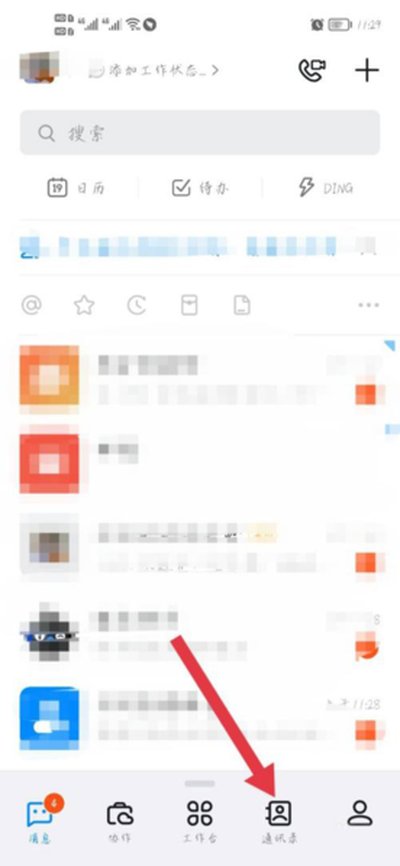 打开钉钉应用后,在主界面下方找到并点击“通讯录”这个选项。
