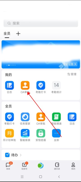 2、点击“OA审批”