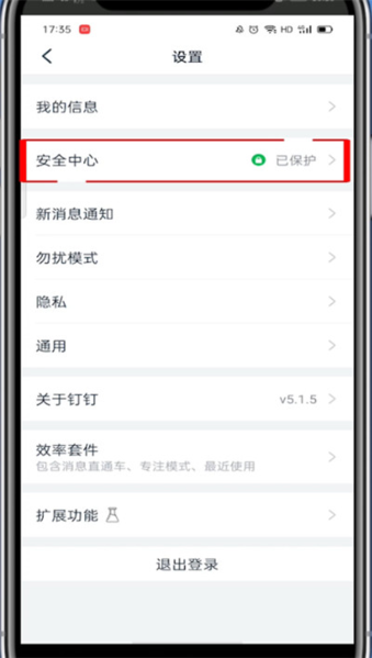 4、进入设置页面后,选择“安全中心”这一项。