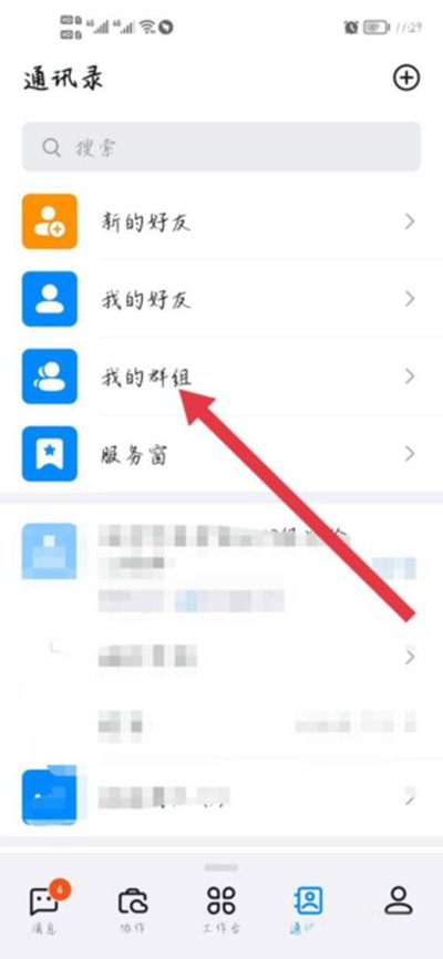 进入通讯录页面后,找到“我的群组”这一项,点击它来查看你所有的群聊列表。