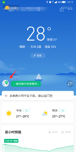 1、其实目前来说,如果你想在彩云天气里重新进行定位,只需要在主页向下滑动,找到下方的定位地图就能进行设置了。