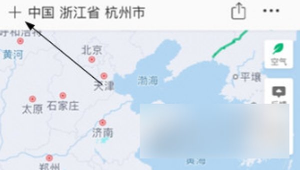 1.首先启动手机里的彩云天气预报APP,在主界面的左上角找到并点击【+】这个功能按钮,这样就能进入城市管理页面。