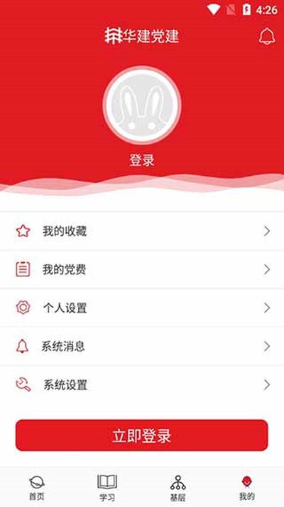 6、点击右下角的“我的”图标,登录个人账号后,这里就成了你的专属空间。你可以查看自己收藏过的党课和资讯,管理自己的党费缴纳记录,还能根据个人习惯对软件进行一些个性化设置。