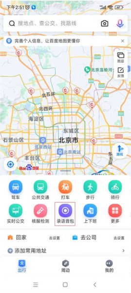 1、打开并登录百度地图应用,如果你想马上开始制作一个属于自己的导航语音包,直接点击界面下方的“录语音包”按钮,就可以进入录制流程了。
