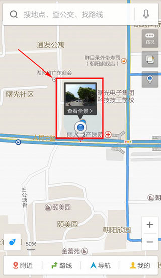 2、应用会立刻加载出你当前位置的街景预览图,接着点击【查看全景】。