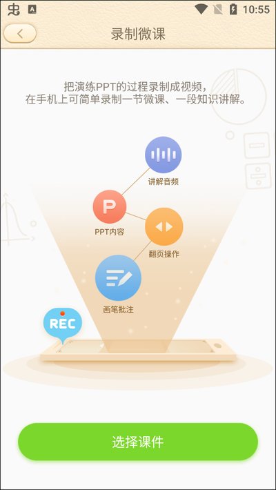 4、在众多功能中,我们点击“录制微课”,然后选择“课件”这个选项。