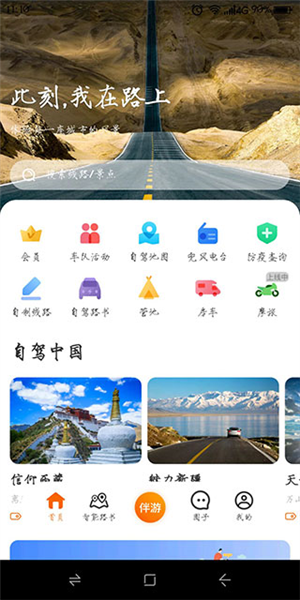 2、进入首页后,你会看到许多制作精良的旅游攻略。你可以在这里查找车队活动,或者制定自己的自驾地图。