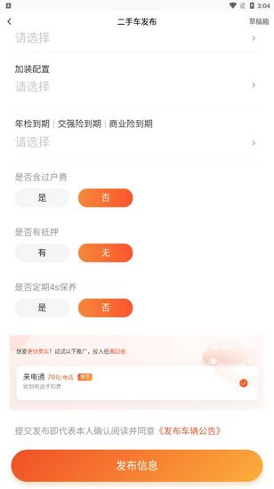 2、你可以通过这个平台,用非常简单的方式发布自己的车辆信息,整个流程被设计得非常人性化,能帮你更快地把车卖出去。