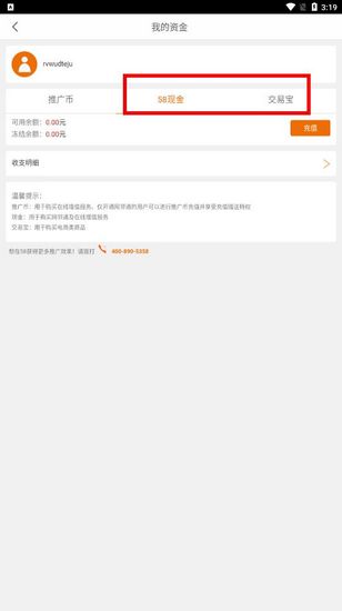 2.在充值界面,你需要先切换到“58现金”或者“交易宝”的标签页,在这里你才能看到具体的充值入口。