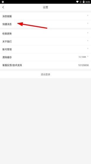 2.在设置菜单里,找到【快捷消息】这个选项,然后点击它。