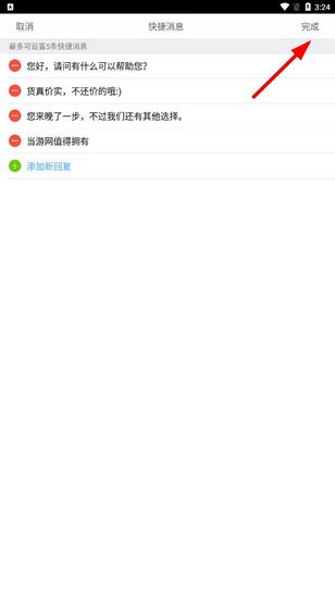 5.在输入框里编辑好你想要设置的回复内容,比如“您好,车还在,随时可以看车”之类的,然后点击【完成】即可保存。