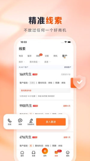 当车商需要联系客户时,通过应用拨打电话是完全免费的,帮你省下一笔不小的通讯开销。