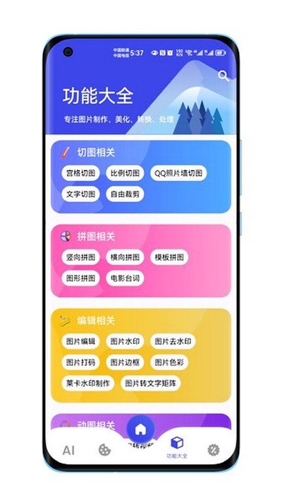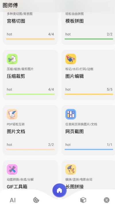 还在为修图P图发愁吗?图师傅来了!这款安卓应用简直是个全能宝藏,功能多到让你惊喜。无论是基础的图片压缩、尺寸裁剪,还是创意满满的个性化拼图,它都能轻松搞定。甚至连处理GIF动图都不在话下。它几乎涵盖了你处理图片时可能遇到的所有场景,一个App就足够了。