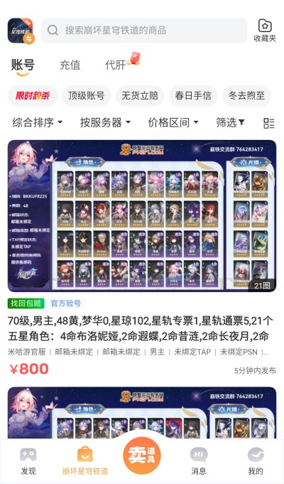 2、选择游戏的列表内,根据需求选项,切换到该游戏的商品列表页面,查看在售账号。
