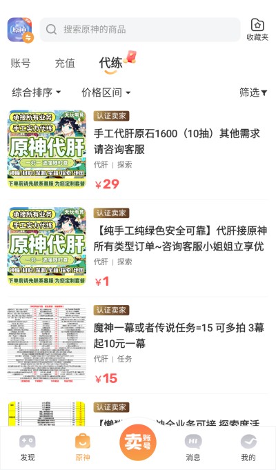 1、打开发现页面,点击账号选购图标,即可进入游戏选择页面,浏览可交易的游戏列表。