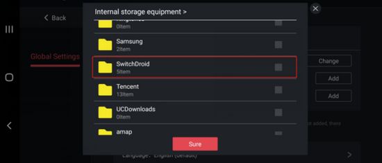 3、接下来,您需要在文件列表中找到并选中“switchdroid”文件夹,按下确定按钮便可以设置好数据包的路径。。。
