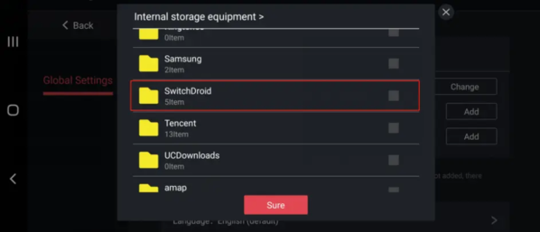 5)最后点按第三行的【Add】按钮,选中【game】文件夹并以【Sure】键确认。。