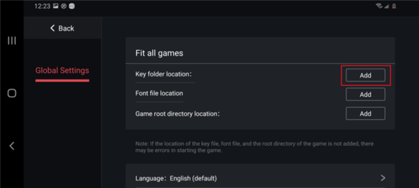 屏幕上将会出现一个引导您定位游戏、KEY文件和字体文件目录的提示窗口,您只需点按“设置”按钮即可。。