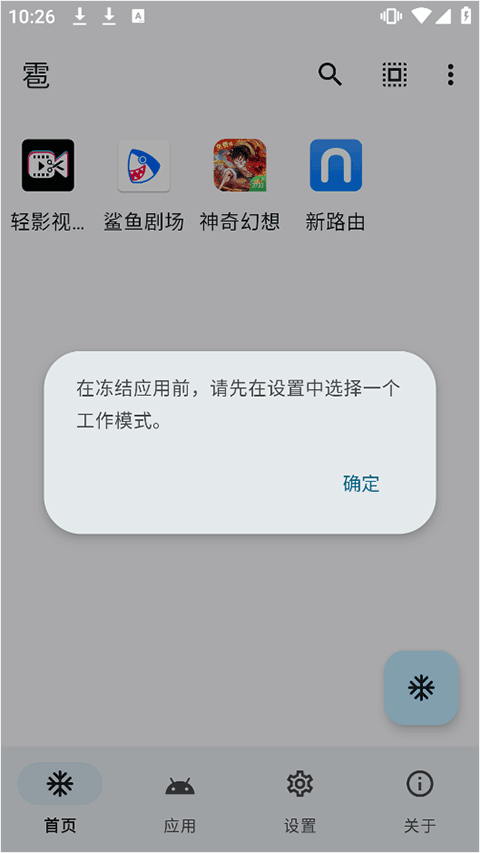 如果你的设备已经Root,你也可以直接选择Root模式来运行。不过需要了解的是,相比其他模式,Root模式在执行冻结或解冻操作时的速度可能会稍微慢一些。