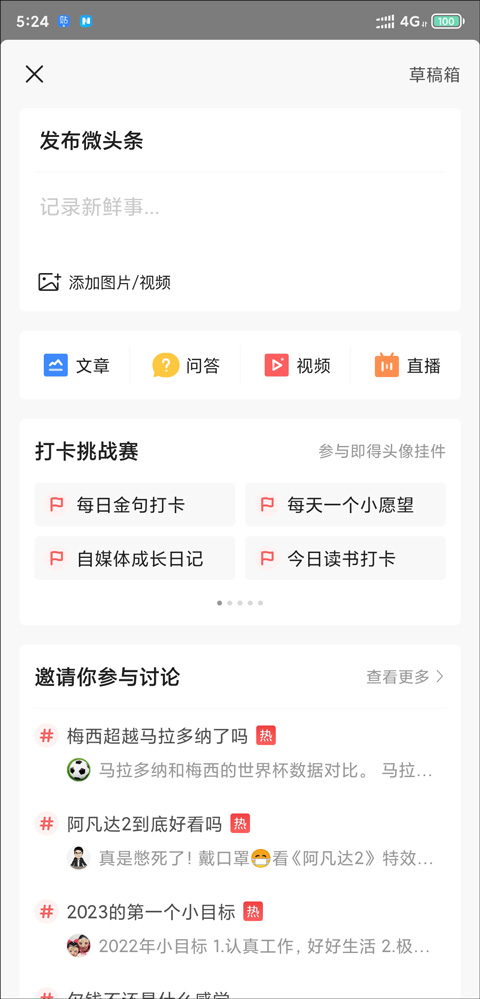 2、在这里,你可以选择发布文章、回答问题,或者发微头条。需要注意的是,发微头条想获得收益通常需要至少有100个粉丝才行。