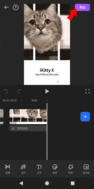 6、 当你对自己的作品感到满意时,点击右上角的“导出”按钮,就能把这个精心制作的视频保存到手机里了。