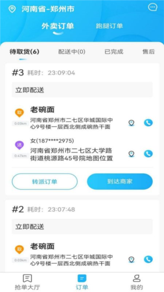 4、接单后可以管理配送订单的实时状态,按时完成任务来赚取相应的订单佣金。