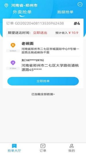 进入抢单大厅后,所有等待配送的外卖订单和跑腿任务都会清晰地呈现在你眼前,供你挑选。