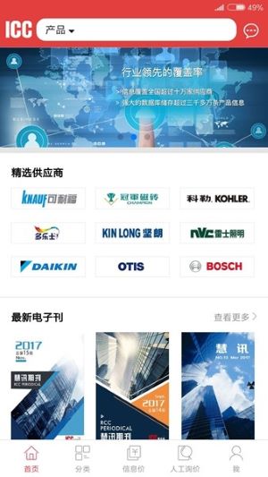 1、打开应用首先看到的就是主界面,这里会为你展示最新一期的电子期刊和一些平台为你挑选的优质供应商。