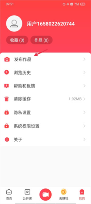 1、首先,打开应用并登录你的个人账号,然后在主界面的“我的”页面里,找到并点击“发布作品”这个选项。