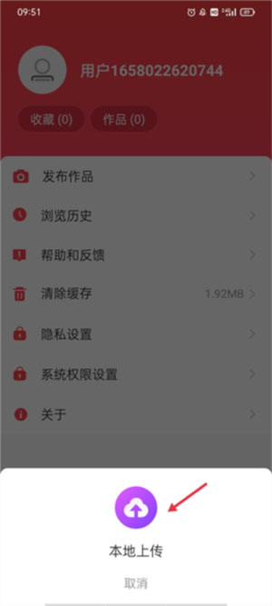 2、点击之后,屏幕上会跳出一个新的图标提示,上面写着“本地上传”,你需要点击这个图标来继续下一步。