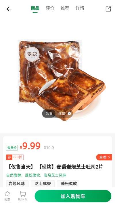 4、商品详情页面,点击加入购物车按钮,将该商品添加到购物车中,完成选购操作。