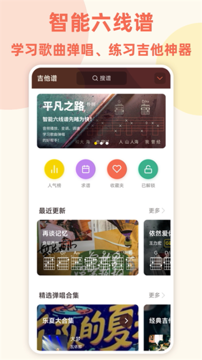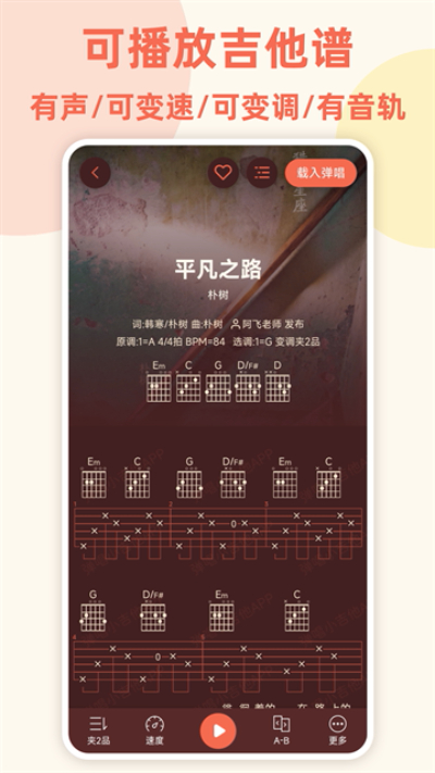 弹唱小吉他app是一款专为吉他弹唱爱好者打造的工具,搭载真实吉他模拟引擎,收录海量适配弹唱的曲谱资源,内置数百首歌曲弹唱伴奏,覆盖流行摇滚民谣等全品类音乐,触控响应贴合真实弹奏手感,零基础也能快速完成完整弹唱操作。
